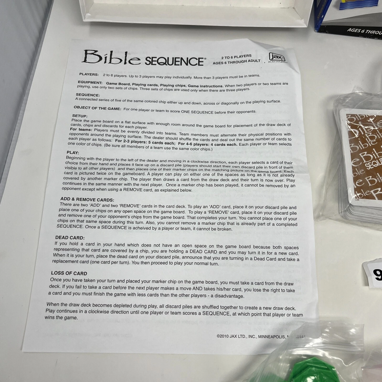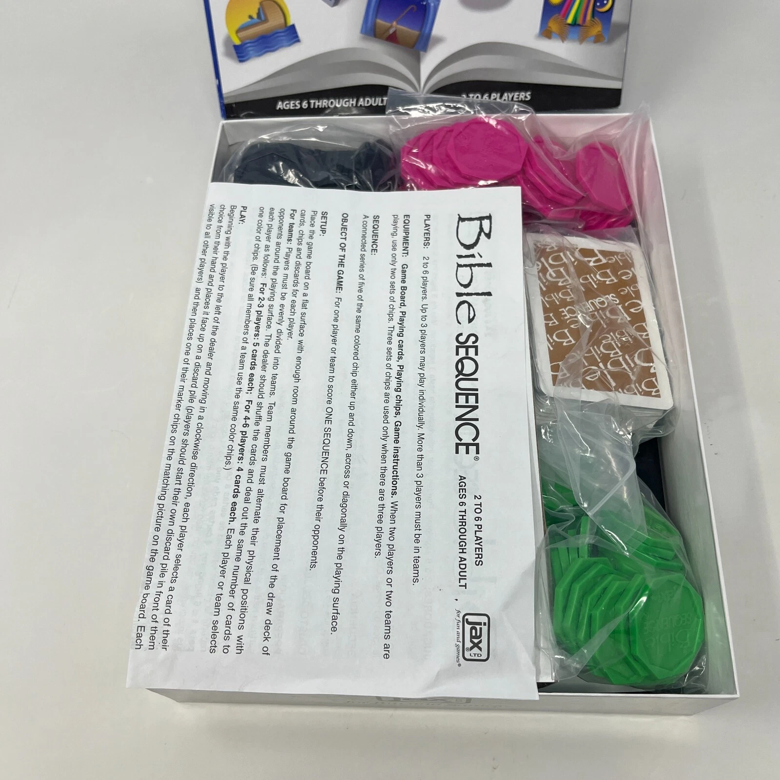 The Bible Sequence Card Board Game by Jax is a fun and educational game for kids and families. With a theme centered around Bible stories, this game can be played by 2-6 players and is suitable for children aged 6 and up. This board/card game engages players with scripture in a playful and interactive way, making it a great option for family game nights, classroom activities, church events, and more.