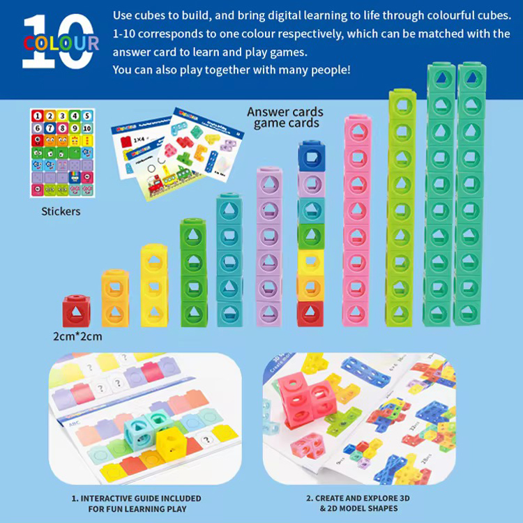 Mathematical Number Blocks offer 100PCS of DIY link cubes made from ABS plastic, designed as an educational toy for kids to enhance math learning. Suitable for ages 3+, these colorful blocks support creativity and cognitive development while meeting safety standards for African and European market.