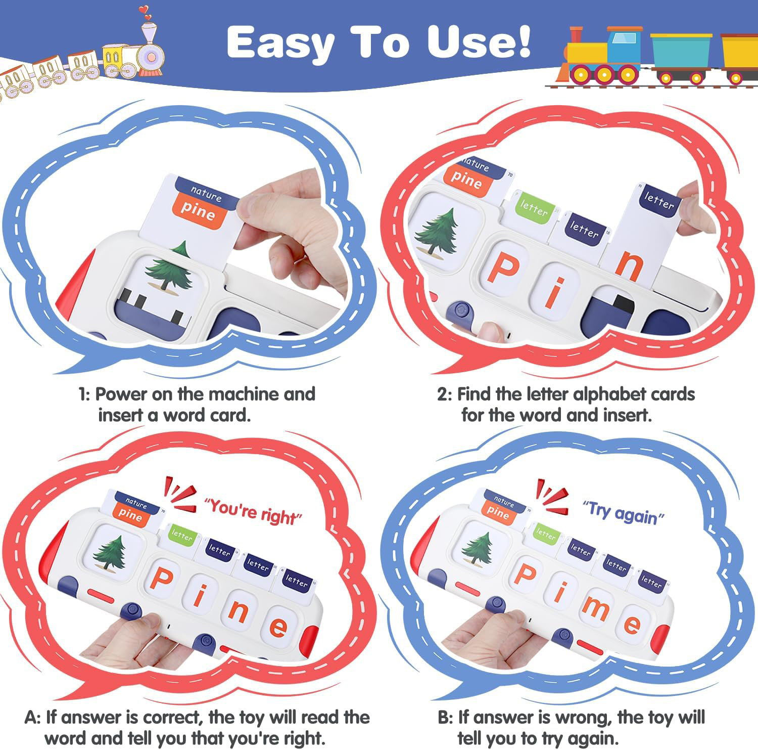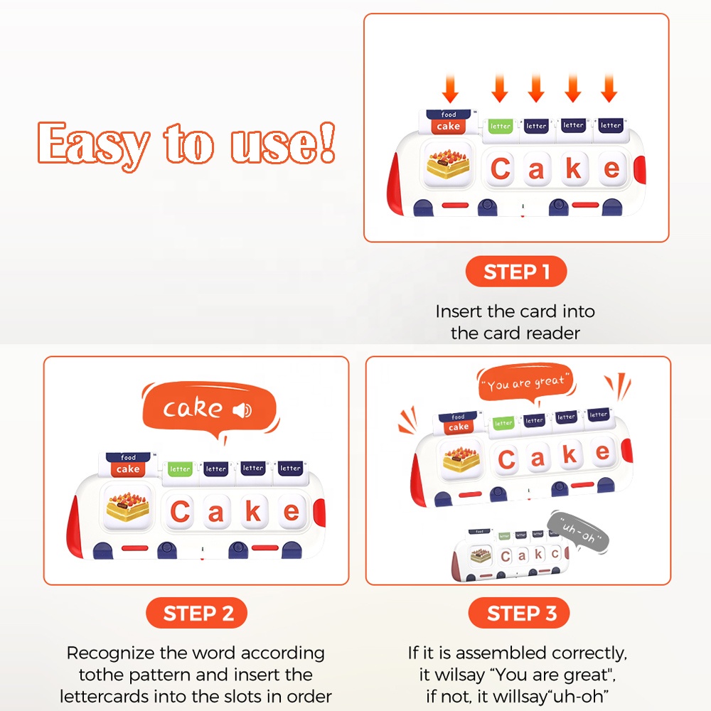 “You’re Great!” Instant Feedback: Unlike passive flash cards, this interactive system uses a two-step insert method. Correct matches earn a cheerful cheer; wrong answers get gentle encouragement. This self-correcting mechanism builds confidence and independent learning.