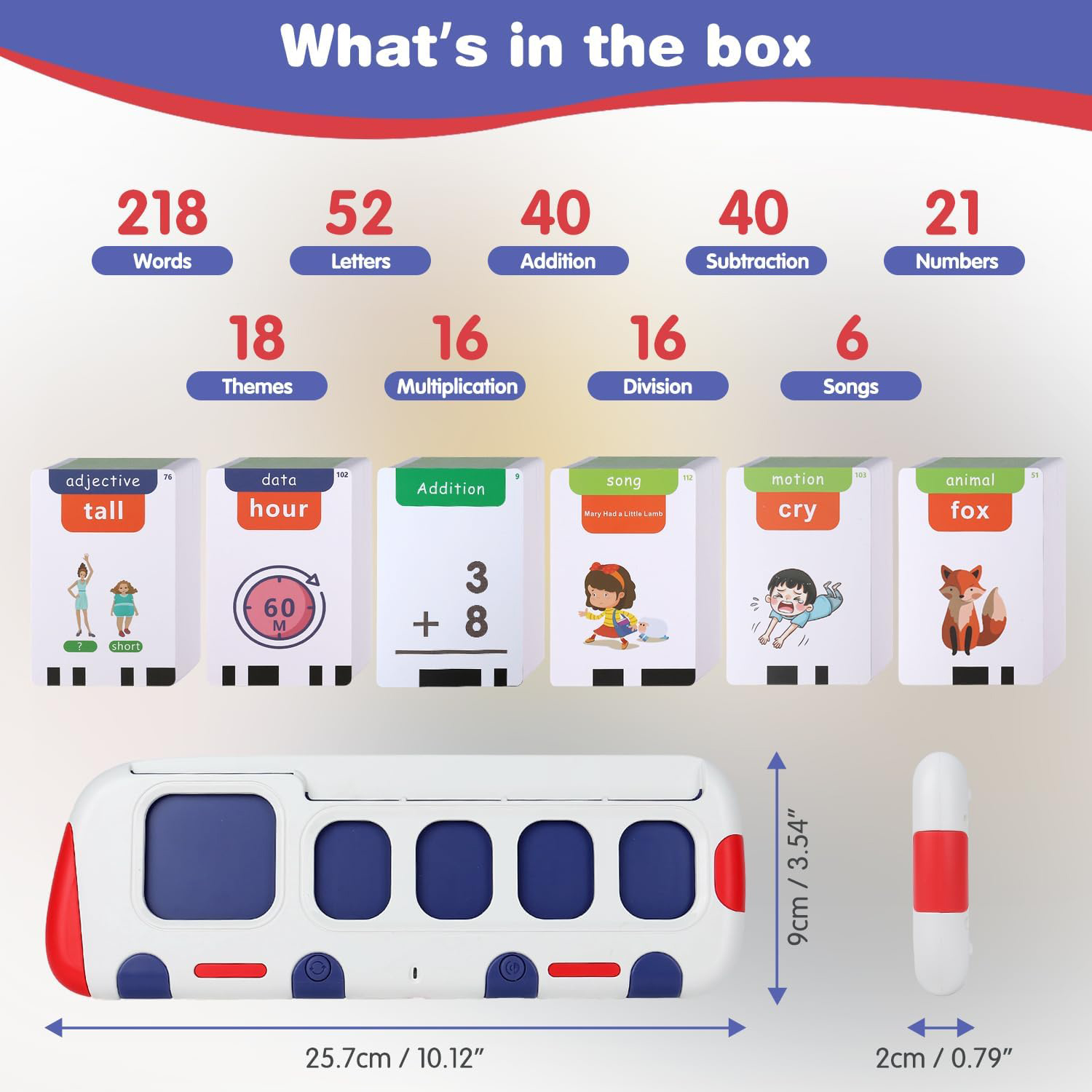 The Complete Gift Set: Includes 233+ double-sided cards, 6 songs, and a USB-C rechargeable reader (5hrs battery) in a premium storage box. Teacher-recommended and perfect for ages 3-8.